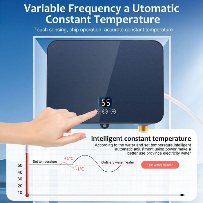 | Kontrol Suhu Presisi Mengusung teknologi suhu konstan pintar, water heater ini mampu menjaga suhu air tetap stabil di rentang suhu air 30-55 °C. Anda bisa mengatur suhunya sesuai dengan keinginan melalui panel yang tersedia. Tersedia juga layar digital sehingga Anda bisa memantau suhu secara presisi. |
