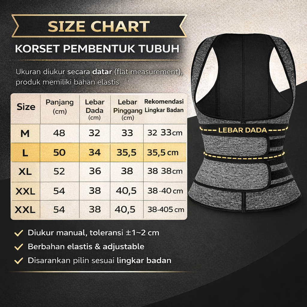 | Gunakan di Setiap Kesempatan Anda bisa menggunakan korset ini di berbagai aktivitas Anda. Saat berolahraga mulai dari fitness, yoga, jogging, hingga angkat beban. Anda juga bisa menggunakannya sebagai pakaian dalam Anda untuk aktivitas sehari-hari seperti bekerja, berkencan, berpesta hingga saat pernikahan untuk membantu membentuk postur tubuh Anda menjadi sempurna. |