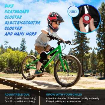 | Dial Sistem Tersedia sistem pengaturan dial di bagian belakang untuk menyesuaikan ukuran kepala anak secara presisi. Helm dapat digunakan untuk lingkar kepala 52 – 58 cm dengan kombinasi busa 12 mm dan 8 mm. Sistem ini membuat helm tidak mudah goyang saat digunakan. |
