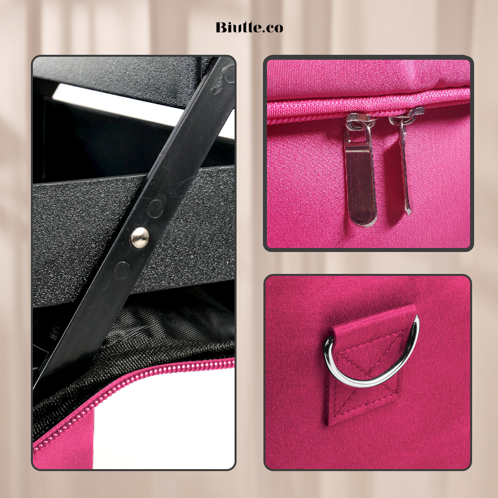 Biutte.co menghadirkan tas impian para MUA akan tas makeup yang anti berantakan. Seluruh peralatan makeup dan aksesori bisa Anda letakkan secara teratur pada 4 layer rak, kompartemen bawah, dan 3 buah kantong jaring. Seluruh peralatan sudah pasti mudah dilihat dan mudah dijangkau. Kini Anda bisa membawa banyak peralatan secara ringkas dan terorganisir dengan tas makeup multi-layer dari Biutte.co.