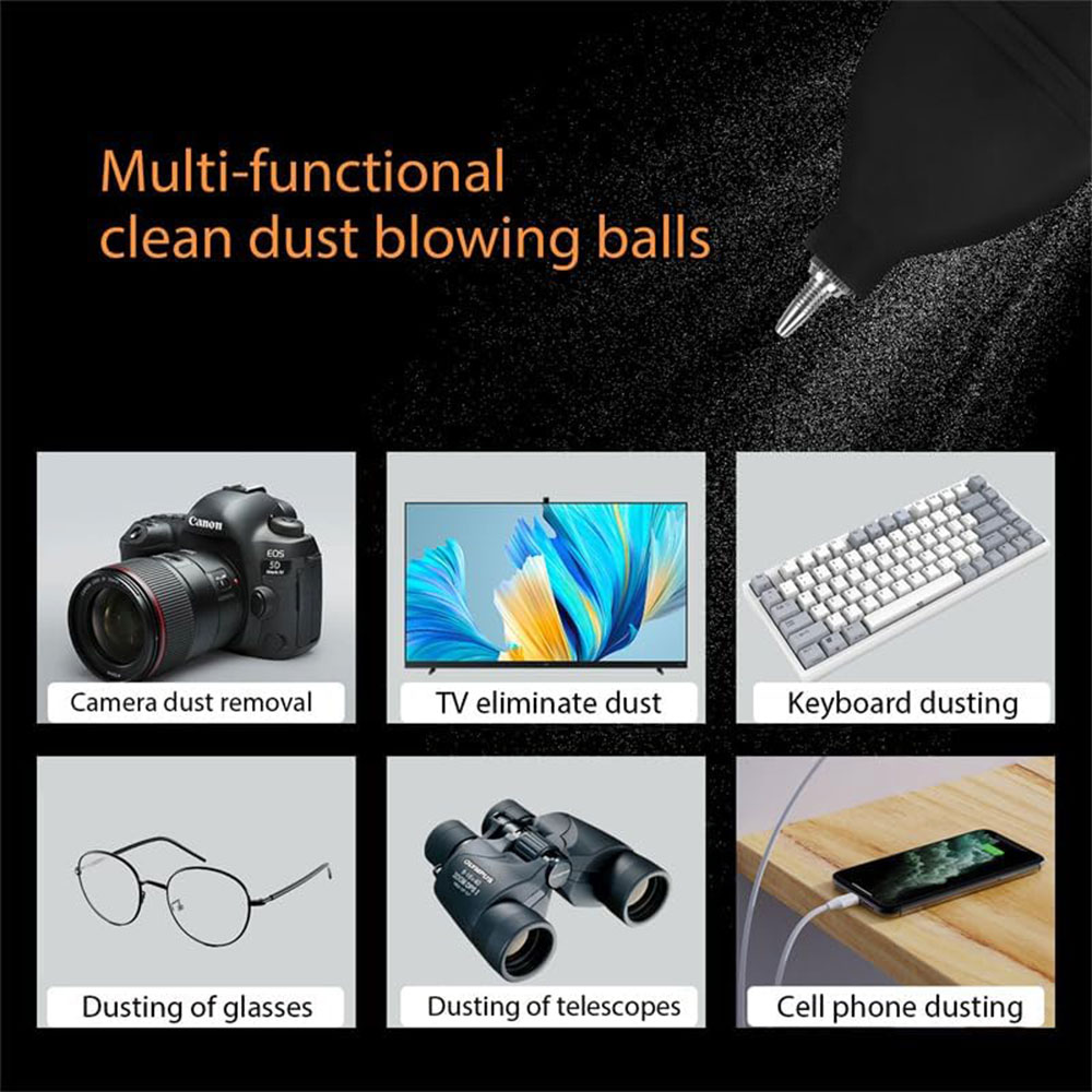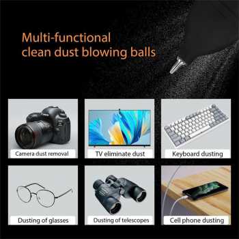 | Ukuran Besar Dengan ukuran bola 10.3 × 5.2 cm, blower ini menghasilkan volume udara yang jauh lebih besar dibanding blower mini. Satu kali tekan sudah cukup untuk meniup debu membandel dari permukaan lensa atau sensor, sehingga proses cleaning lebih cepat dan efisien. |