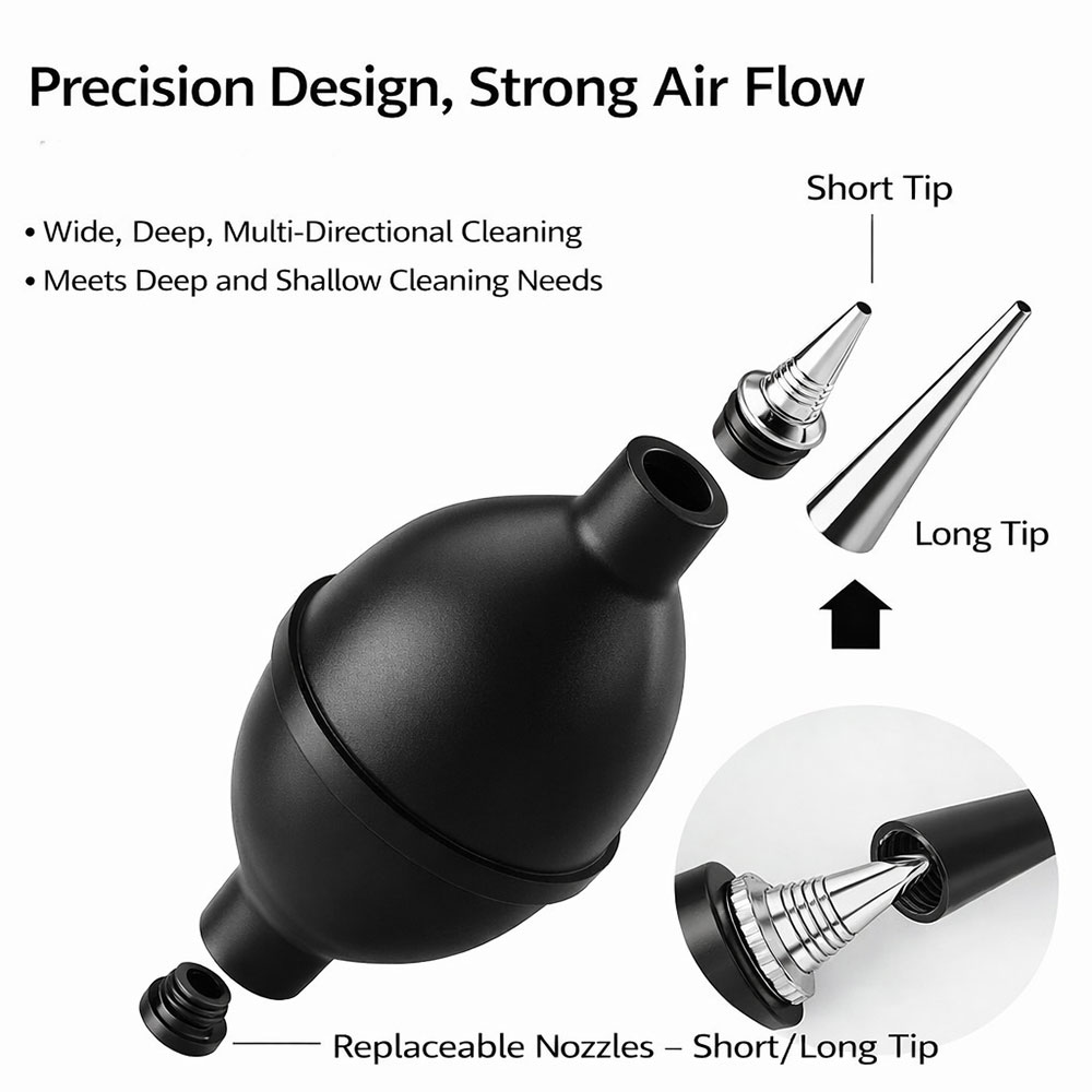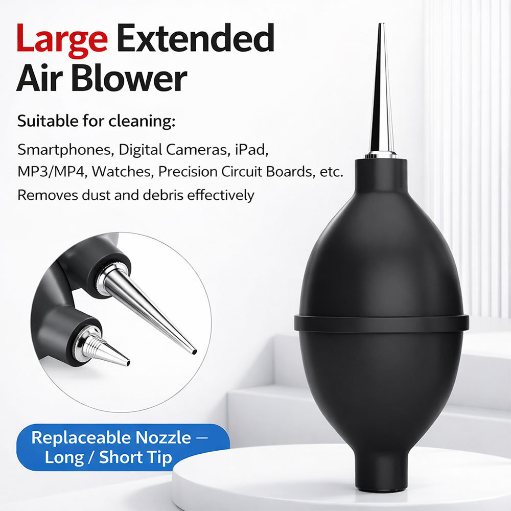 Bersihkan kamera kesayanganmu seperti profesional! Blower kamera P6 berukuran besar ini hadir dengan teknologi katup udara satu arah (one-way air intake), memastikan setiap hembusan udara yang keluar adalah udara bersih dan segar. Cocok untuk membersihkan lensa, sensor, filter, cermin, dan berbagai bagian sensitif pada kamera DSLR maupun mirrorless.