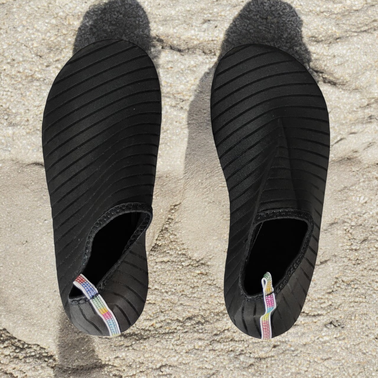| Sol Anti-Slip yang Aman di Segala Permukaan Dilengkapi dengan pola grip kuat pada bagian bawah, sepatu ini memberikan pijakan stabil di berbagai permukaan, mulai dari bebatuan pantai, dasar kolam, hingga lantai studio yoga. Solnya yang fleksibel namun tangguh melindungi kaki Anda dari benda tajam maupun permukaan licin saat beraktivitas. |