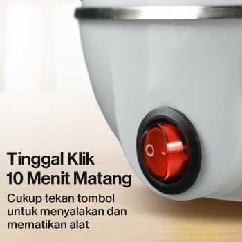 | 1x Klik Praktis Tak perlu repot memilih mode, cukup tekan tombol power dan Anda dapat langsung menikmati telur yang matang sempurna dalam 10 menit. Cepat dan praktis untuk sehari-hari. |