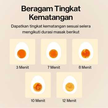 | Matang Merata, Siap Santap Kombinasi pemanas elektrik dan wadah stainless steel hasilkan suhu panas yang stabil untuk merebus telur. Nikmati aneka hidangan telur yang matang merata. |