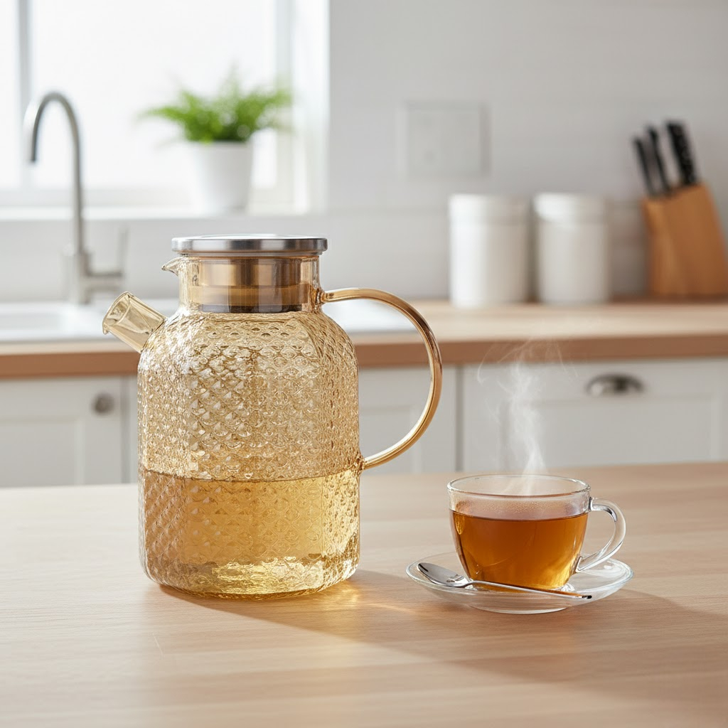 | Kapasitas Besar Kini Anda tidak perlu lagi bolak-balik membuat teh untuk menyajikan minuman kepada tamu. Teko pitcher ini dapat menampung air sebanyak 1514 ml (1.5 L) sehingga dapat digunakan untuk menghidangkan teh ke beberapa gelas sekaligus. Nikmati momen berkumpul bersama tanpa harus repot mengisi ulang terus menerus. |