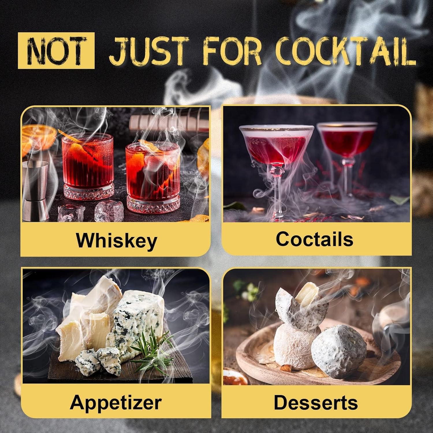 | Desain Klasik, Simpel, dan Mudah Digunakan Alat pengasap cocktail ini dirancang dengan gaya klasik yang simpel namun elegan. Penggunaannya sangat mudah, cukup letakkan alat di atas gelas, tambahkan wood chips, lalu bakar sedikit untuk menghasilkan asap yang akan menyebar ke dalam minuman Anda, menciptakan pengalaman minum yang unik. |