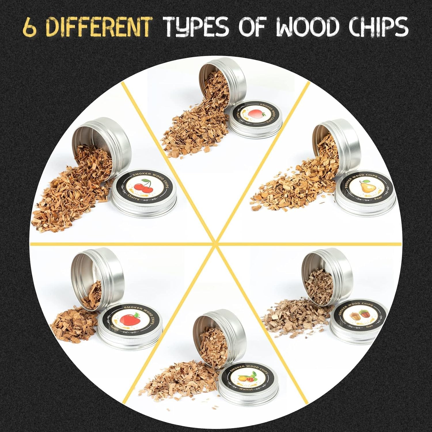 | Dilengkapi dengan 6 Jenis Wood Chips Premium Untuk menciptakan pengalaman aroma yang lebih autentik, alat ini dilengkapi dengan enam jenis wood chips premium, seperti oak, pear, apple, peach, walnut, dan cherry. Setiap jenis chip memberikan aroma khas yang menambah kenikmatan dan kesan istimewa pada setiap minuman Anda. |