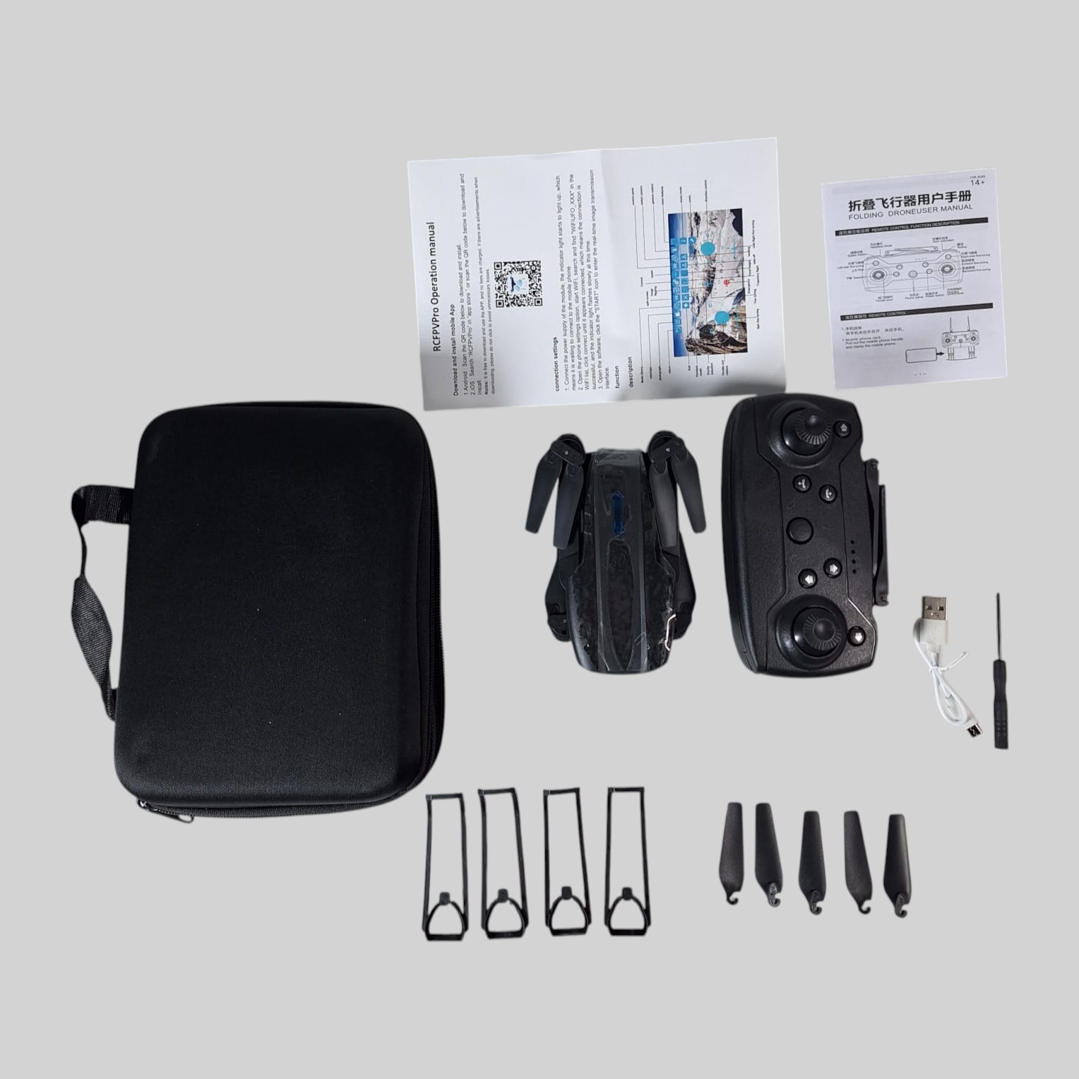 | Kontrol dengan Smartphone dan Remote Drone E99 dapat dikendalikan melalui smartphone maupun remote control sehingga fleksibel sesuai preferensi Anda. Aplikasi pendukung memungkinkan tampilan kamera secara langsung lewat layar ponsel. Remote control memberikan kontrol manual yang presisi sehingga Anda tetap leluasa mengarahkan drone. |
