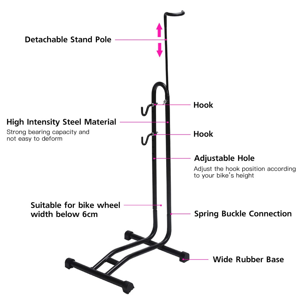 | Material Berkualitas Tinggi Terbuat dari bahan baja karbon berkualitas tinggi, produk ini menawarkan daya tahan yang luar biasa. Dengan desain yang kokoh dan stabil, standar parkir sepeda ini dapat menahan sepeda Anda dengan aman tanpa risiko jatuh atau tergelincir. |
