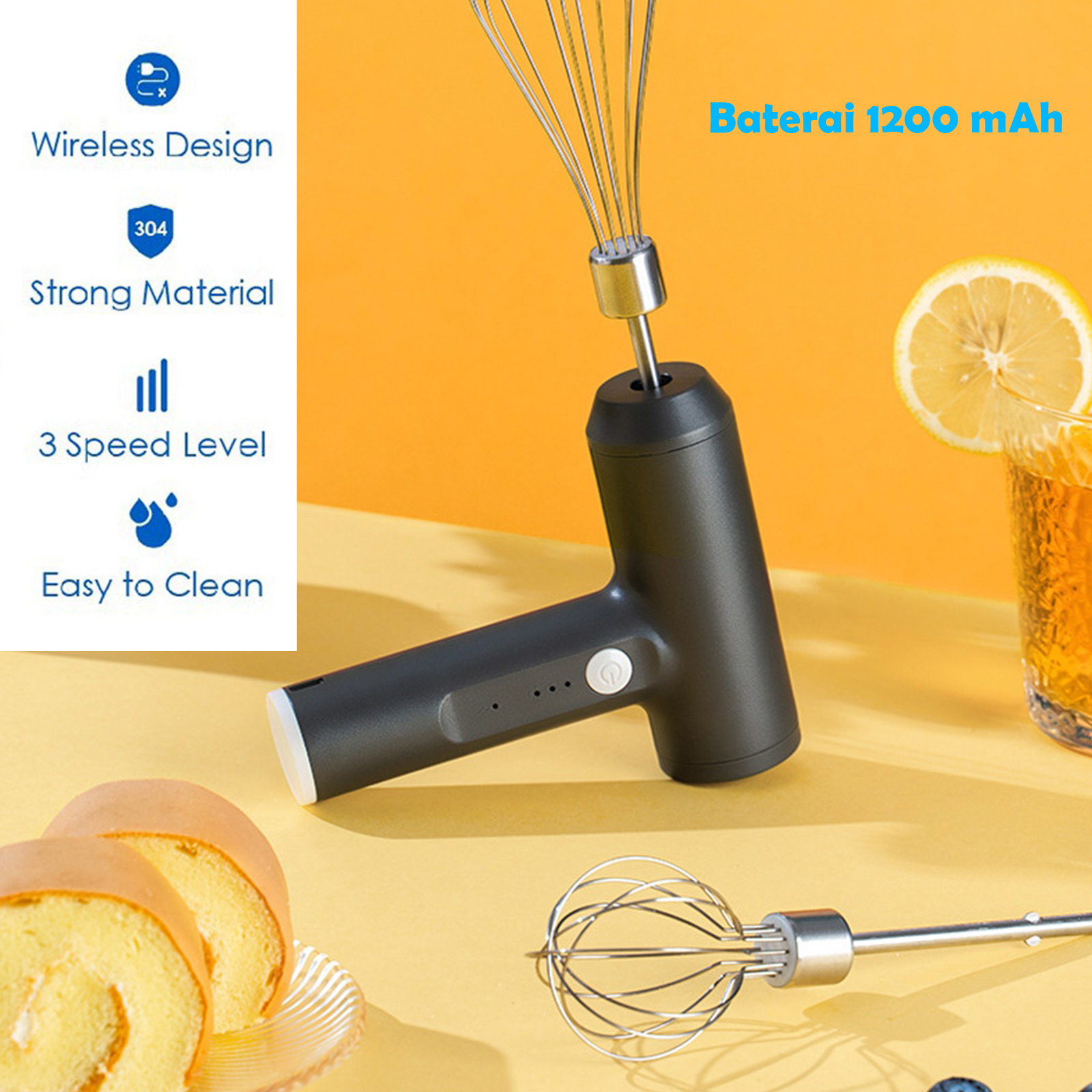 Rasakan kemudahan dan kebebasan baru dalam menyiapkan adonan dengan mixer wireless multifungsi ini. Dirancang tanpa kabel, alat ini memberikan fleksibilitas penuh untuk mengaduk bahan di mana saja tanpa harus bergantung pada colokan listrik. Tenaganya kuat, kecepatan bisa diatur, dan materialnya dirancang agar tahan lama meski digunakan setiap hari. Dengan desain ergonomis dan performa efisien, mixer ini menjadi pilihan sempurna bagi Anda yang menginginkan kemudahan sekaligus hasil adukan yang merata dan profesional di dapur.