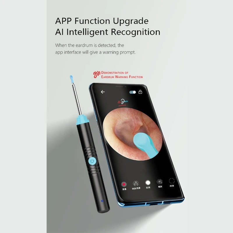 | Perlindungan Gendang Telinga Dilengkapi AI eardrum recognition, kamera akan memberikan peringatan visual "Do Not Touch the Eardrum" di layar smartphone ketika ujung alat terlalu dekat dengan membran timpani. Ini adalah fitur keamanan aktif pertama di kelasnya yang memastikan proses pembersihan selalu terlindungi dari risiko cedera gendang telinga. |