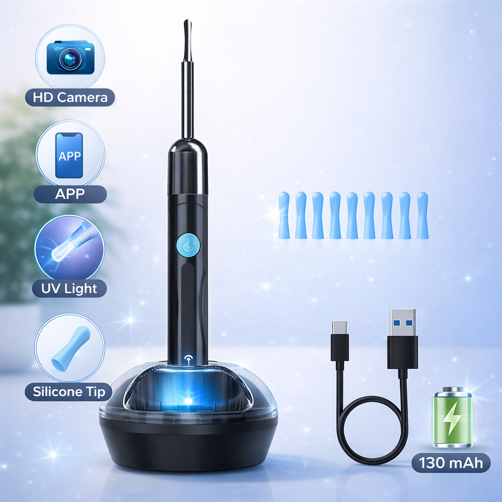 Dengan kamera endoskopi pembersih telinga ini, Anda dapat melihat kondisi liang telinga secara jelas dan real-time melalui smartphone. Dilengkapi kamera kualitas 1080 P dengan transmisi stabil serta lampu LED di sekitar lensa, setiap detail terlihat lebih terang dan tajam. Sempurna dengan fitur lainnya seperti 3 axis gyroscope, baterai bawaan 130 mAh, charging base, kontrol suhu cerdas, sinar UV, hingga tahan air.