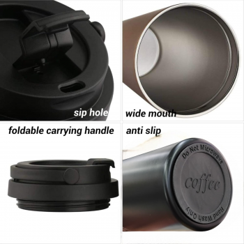 | Pegangan Lipat Praktis Pegangan lipat memudahkan Anda membawa tumbler dengan nyaman di berbagai situasi. Desainnya ringkas sehingga tidak mengganggu saat disimpan di tas atau dibawa dengan tangan. Dengan pegangan ini, tumbler lebih fleksibel digunakan baik di kantor, perjalanan, maupun aktivitas luar ruangan. |