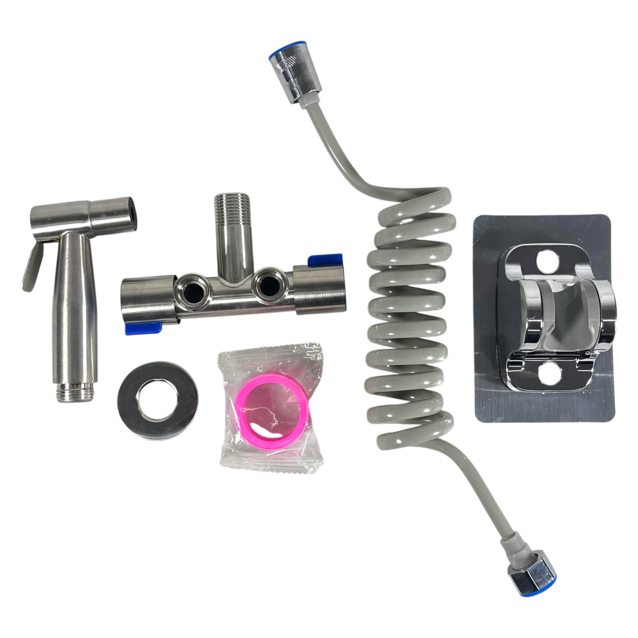 Kepala jet washer set ini sudah termasuk semua komponen penting dalam satu paket, sehingga Anda tidak perlu membeli tambahan aksesoris. Terdiri dari bidet gun stainless steel 304, selang spiral 1.5 M, large panel base, dan double control angle valve. Instalasi jadi lebih praktis, hemat biaya, dan siap digunakan tanpa modifikasi tambahan.