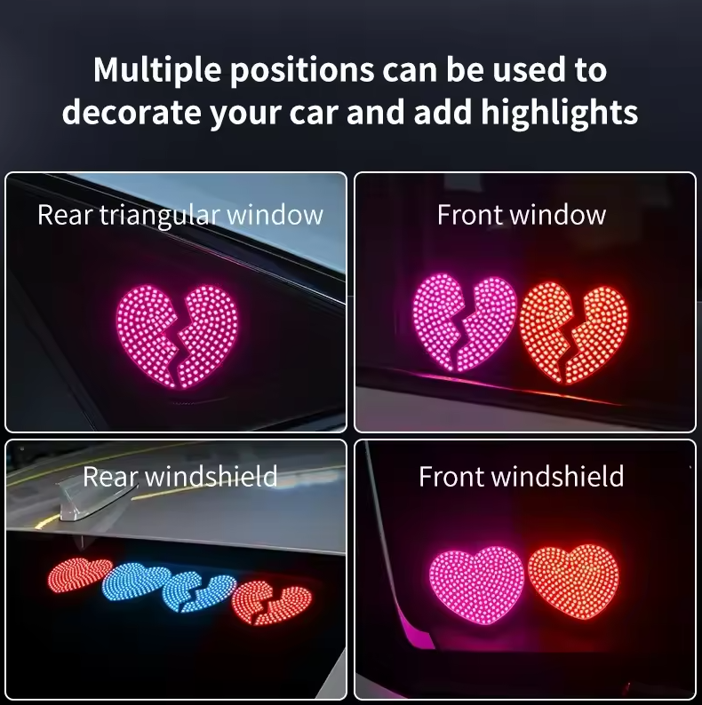 Lampu LED dekorasi mobil Eye of Love ini dirancang untuk memberikan sentuhan unik dan romantis pada tampilan mobil Anda. Dengan bentuk hati bercahaya pink, lampu ini sangat cocok dipasang di kaca belakang mobil untuk menciptakan kesan manis, estetik, dan eye-catching, terutama saat malam hari. Cocok untuk Anda yang ingin mengekspresikan gaya personal, suasana romantis, atau sekadar membuat mobil tampil lebih menarik.