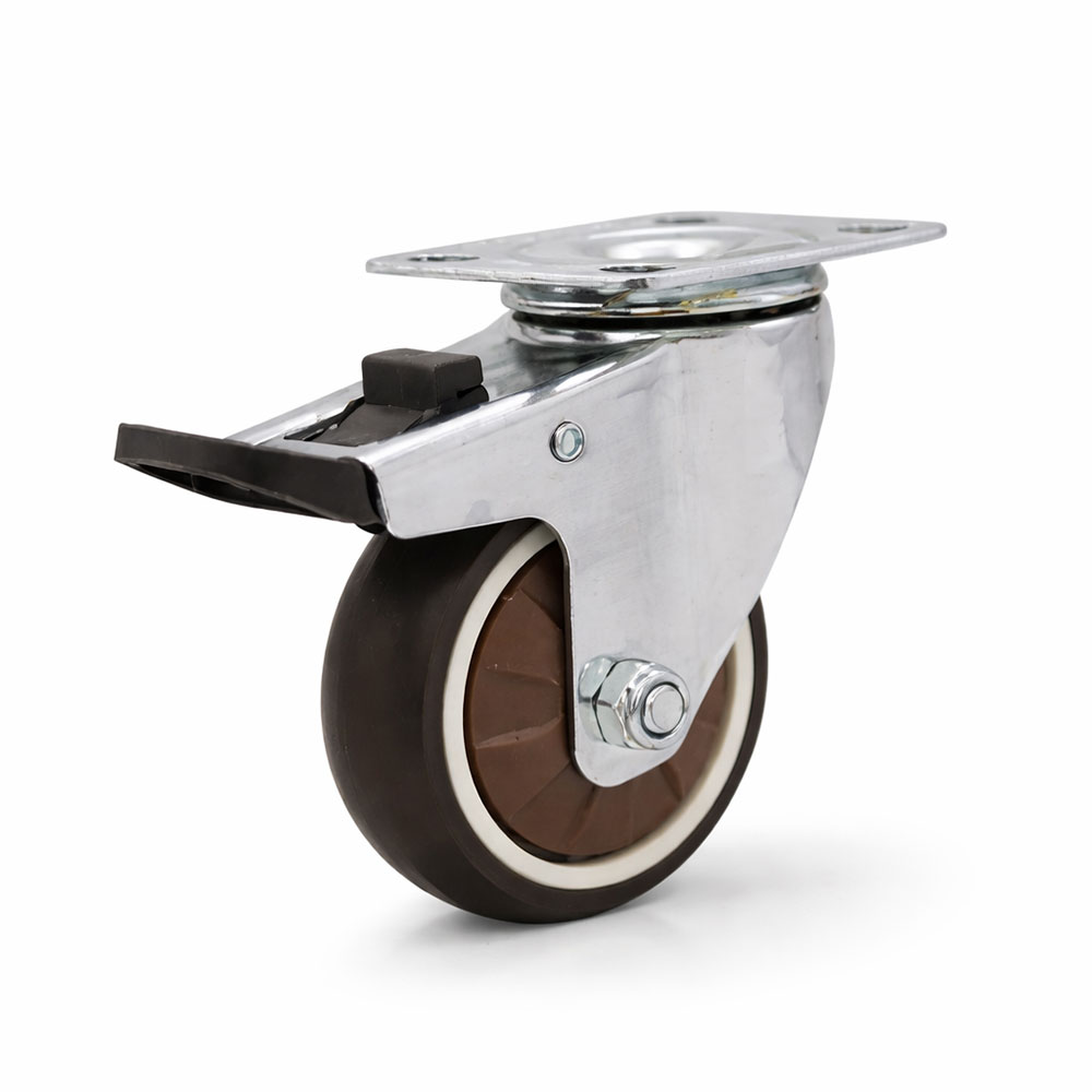CASTRY Roda Kastor Soft Rubber Caster Wheel Flat With Brake TPR 3Inch 75mm - C30 - Brown