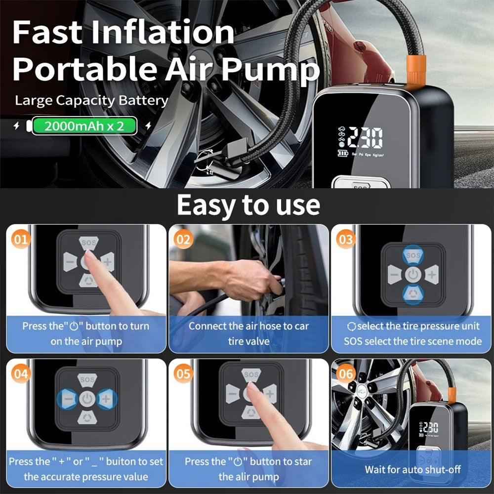 CENXINY solusi isi angin ban kendaraan tanpa harus keluar rumah. Pompa ban elektrik ini memudahkan pengisian angin dengan layar digital akurat dan fitur auto stop yang akan berhenti otomatis saat tekanan tercapai. Dilengkapi fitur smart pump chip, baterai 4000 mAh, senter LED dan desain portabel membuat pompa ini siap dibawa kemana saja dan kapan saja.