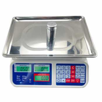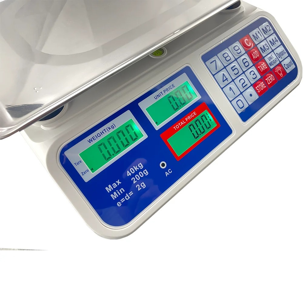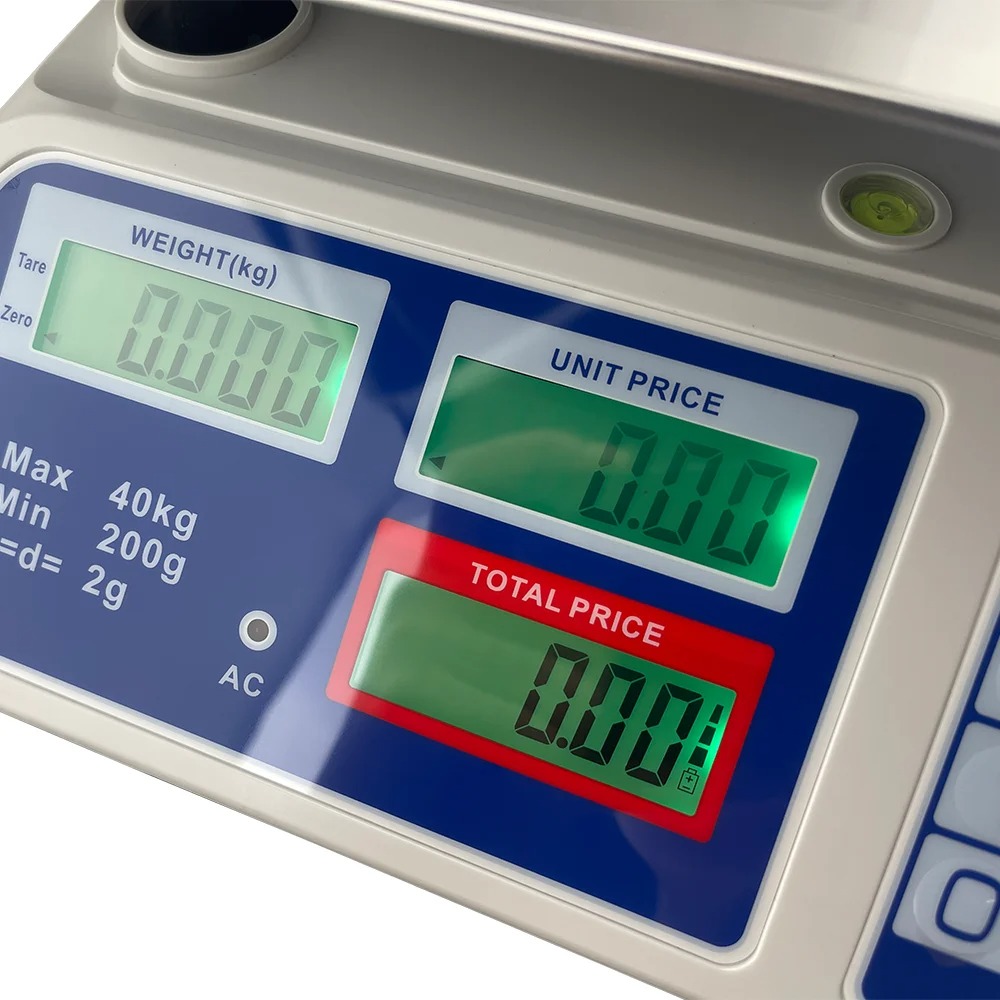 Timbangan digital profesional yang dirancang untuk kebutuhan toko, pasar, UMKM, dan usaha retail. Dilengkapi sistem perhitungan harga otomatis, layar dual display, serta baterai lithium isi ulang yang praktis dan hemat listrik. Cocok untuk menimbang buah, sayur, sembako, daging, hingga kebutuhan grosir lainnya. Dengan kapasitas besar 40 kg dan akurasi tinggi 2 g, timbangan ini membantu transaksi menjadi lebih cepat, presisi, dan profesional.