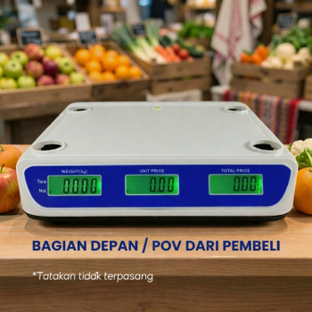 | Dual LCD Display Depan & Belakang Timbangan dilengkapi dua layar LCD digital yang menampilkan informasi berat, harga satuan, dan total harga secara bersamaan. Fungsi ini memudahkan penjual dan pembeli untuk melihat hasil penimbangan dengan jelas tanpa perlu memutar alat. Keunggulannya, transaksi menjadi lebih transparan, rapi, dan meningkatkan rasa percaya pelanggan saat berbelanja. |