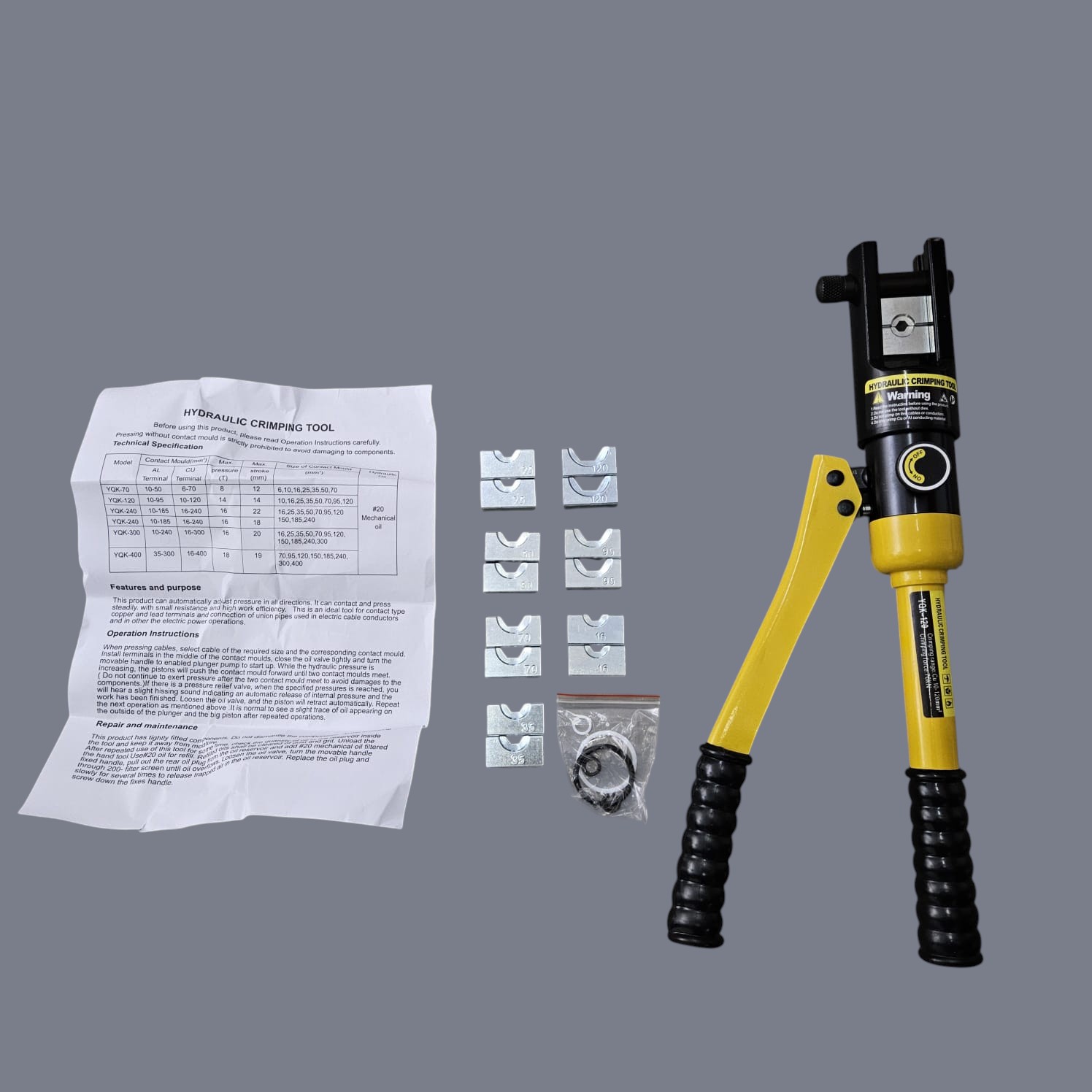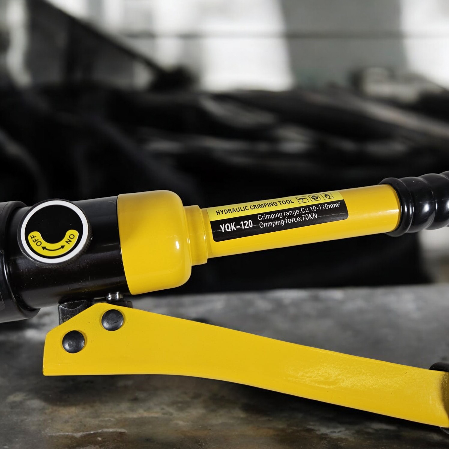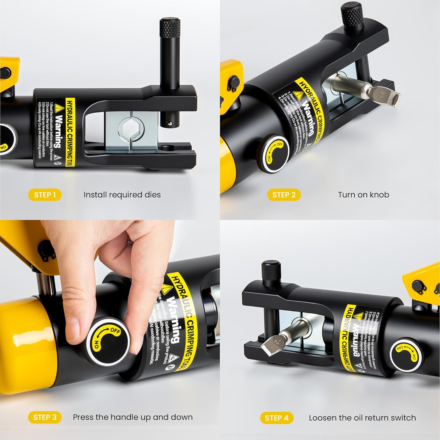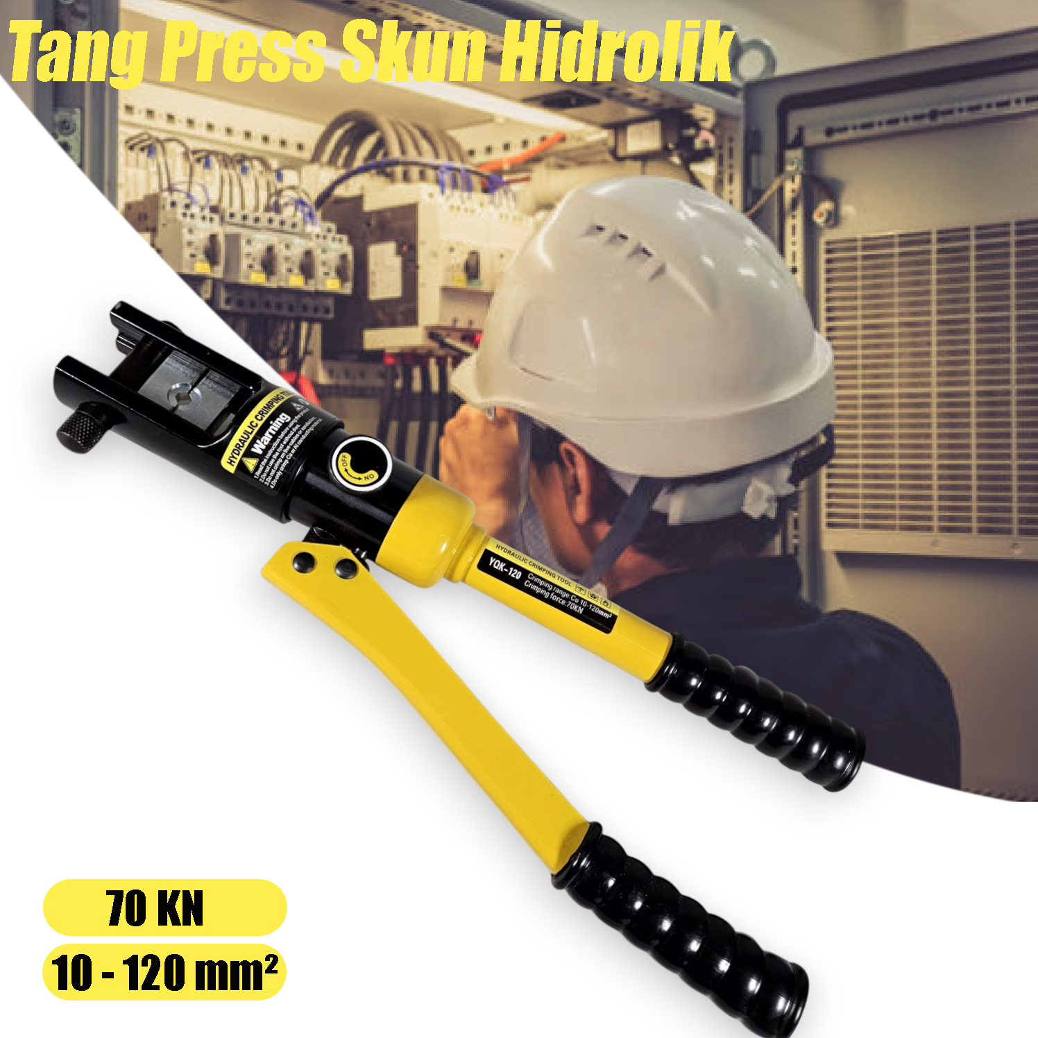 | Kemudahan Crimping Kabel Memiliki kapasitas crimping yang besar, mampu menangani kabel dan skun dengan ukuran 10 hingga 120 mm². Dengan kapasitas ini, tang press hidrolik sangat cocok digunakan untuk proyek kelistrikan skala besar, seperti instalasi jaringan listrik, panel surya, atau instalasi kabel pada alat berat. |