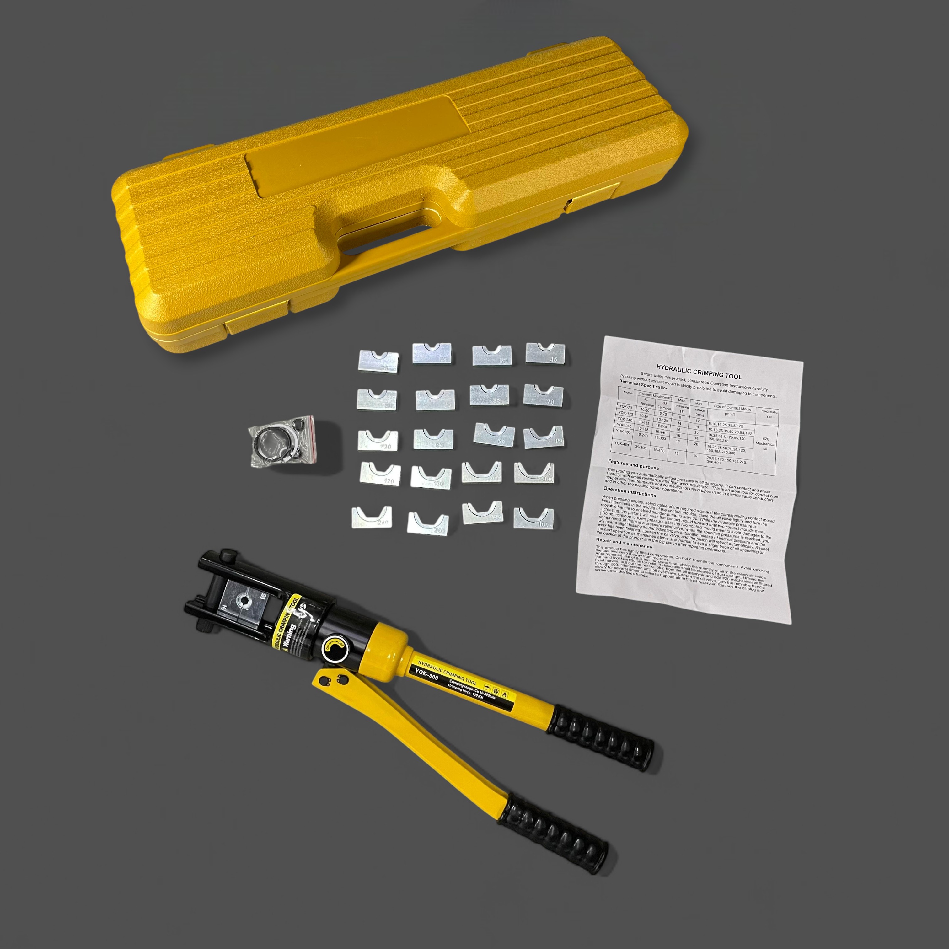 | Kemudahan Crimping Kabel Memiliki kapasitas crimping yang besar, mampu menangani kabel dan skun dengan ukuran 16 hingga 300 mm². Dengan kapasitas ini, tang press hidrolik sangat cocok digunakan untuk proyek kelistrikan skala besar, seperti instalasi jaringan listrik, panel surya, atau instalasi kabel pada alat berat. |