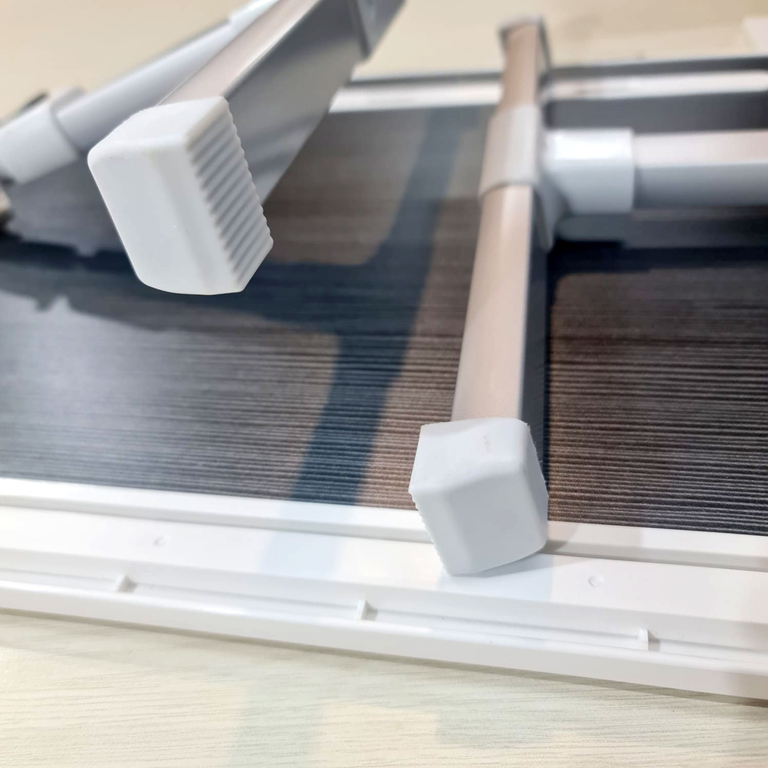 | Mampu Tahan Beban Material kayu MDF berkualitas pada bagian papan meja membuatnya kokoh dan mampu menahan beban laptop, keyboard, hingga buku. Bagian lis pinggir meja, bracket, engsel, serta alas kaki meja menggunakan bahan plastik yang halus sehingga tidak merusak permukaan kasur. Material utama kaki-kakinya pun dari aluminium yang ringan dan tahan karat namun tetap kokoh. Meja lipat ini dapat dimanfaatkan sebagai meja kerja, meja belajar, atau meja bersantai sambil browsing sebelum tidur. |
