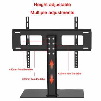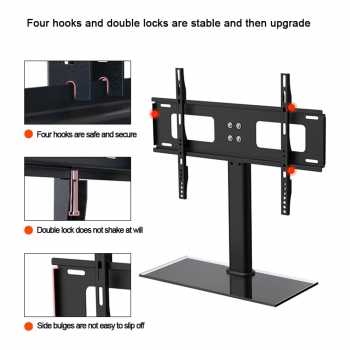 | Tidak Perlu Pengeboran Berbeda dengan bracket TV pada umumnya, bracket tabletop ini tidak memerlukan pengeboran atau pemasangan ke dinding. Cukup letakkan bracket di atas meja untuk memberikan posisi yang stabil dan ketinggian yang ideal untuk menonton TV. |