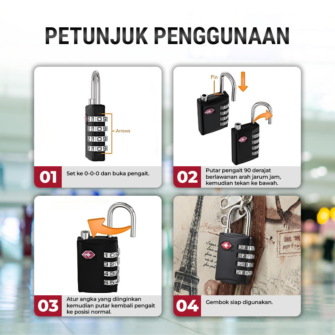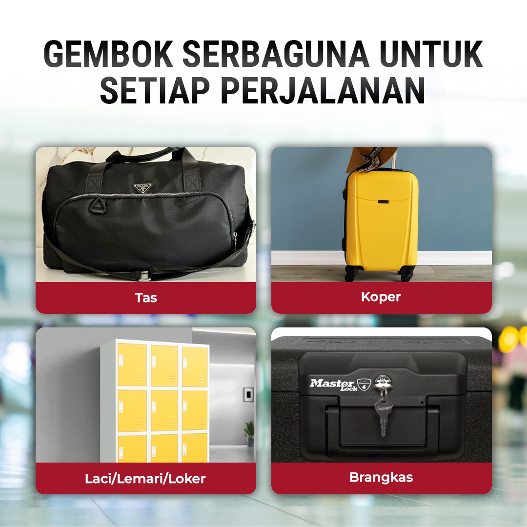 | Untuk Berbagai Tas dan Koper Tak hanya untuk koper, gembok ini cocok untuk ransel, tas kerja, atau loker gym. Satu gembok, berbagai keperluan! |