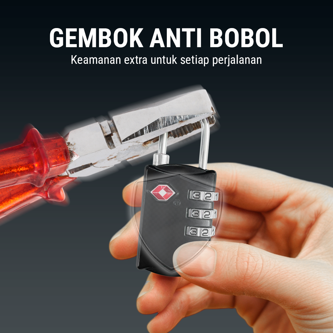 | Anti Jebol, Kuat dan Kokoh Kawat gembok dari bahan zinc alloy yang kuat dan rapat membuatnya tahan banting. Lebih sulit dibobol sehingga barang tetap aman selama perjalanan. |