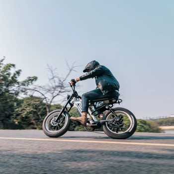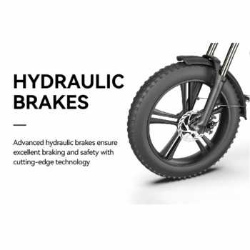 | Ban Besar Dukung Suspensi Menggunakan ban berukuran 20 x 4 Inch, sepeda listrik ini memberikan daya cengkeram yang lebih baik di berbagai medan, baik aspal maupun off-road. Kombinasi ban besar dengan fork suspensi depan juga meningkatkan kenyamanan saat melintasi jalanan yang tidak rata. |