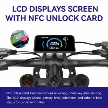 | Layar LCD Tampilkan Informasi Sepeda ini memiliki layar LCD yang berfungsi sebagai odometer digital. Layar ini menampilkan informasi penting seperti jarak tempuh, kecepatan, serta kapasitas baterai, sehingga Anda dapat memantau kondisi berkendara dengan lebih mudah dan akurat. Dilengkapi NFC, Anda juga bisa menyalakan sepeda listrik dengan menempelkan kartu ke layar. |
