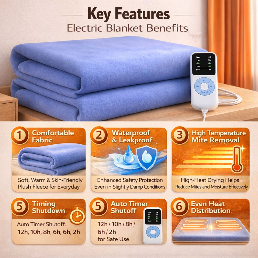 | Keamanan Penggunaan Maksimal Selimut listrik ini dilengkapi sensor pembatas suhu untuk mencegah panas berlebih. Ketika suhu mendekati batas maksimal, sistem akan menstabilkan panas secara otomatis. Fitur ini membantu mengurangi risiko overheating saat digunakan dalam waktu lama. Perlindungan tambahan ini membuat penggunaan lebih aman untuk kebutuhan harian. |