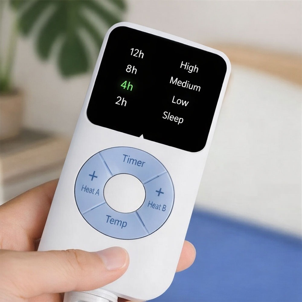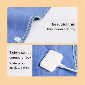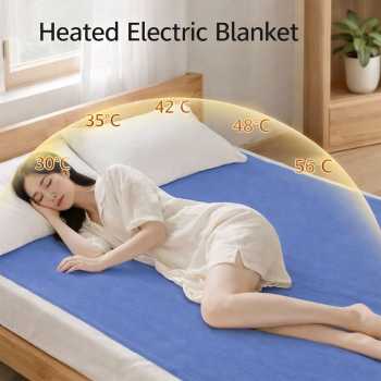 | Rasakan Hangat yang Sempurna Selimut listrik ini memiliki 5 tingkat pengaturan suhu dengan rentang sekitar 30 °C, 35 °C, 42 °C, 48 °C hingga maksimal 56 °C. Pengaturan ini memungkinkan pengguna memilih suhu ringan untuk kenyamanan tidur atau suhu lebih tinggi untuk pemanasan cepat sebelum tidur. Distribusi panas dirancang merata agar tidak terjadi titik panas berlebih pada satu area. Sistem kontrol membantu menjaga suhu tetap stabil sehingga tetap hangat namun tidak terasa kering di kulit. |