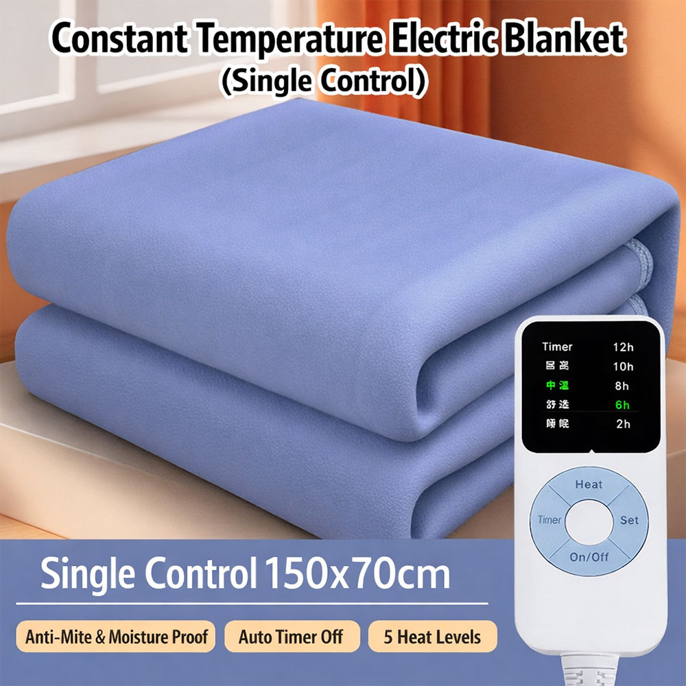 Clivia Selimut Listrik 150 x 70 cm 220 V single control dengan 5 level suhu dan timer auto off, dirancang sebagai alas pemanas kasur 1 orang yang cepat hangat, suhu stabil, dan dilengkapi overheat protection. Terbuat dari polypropylene fiber lembut berbobot 950 g, cocok untuk menjaga kasur tetap hangat dan kering saat cuaca dingin atau ruangan AC, warna gray elegan dan aman digunakan harian.