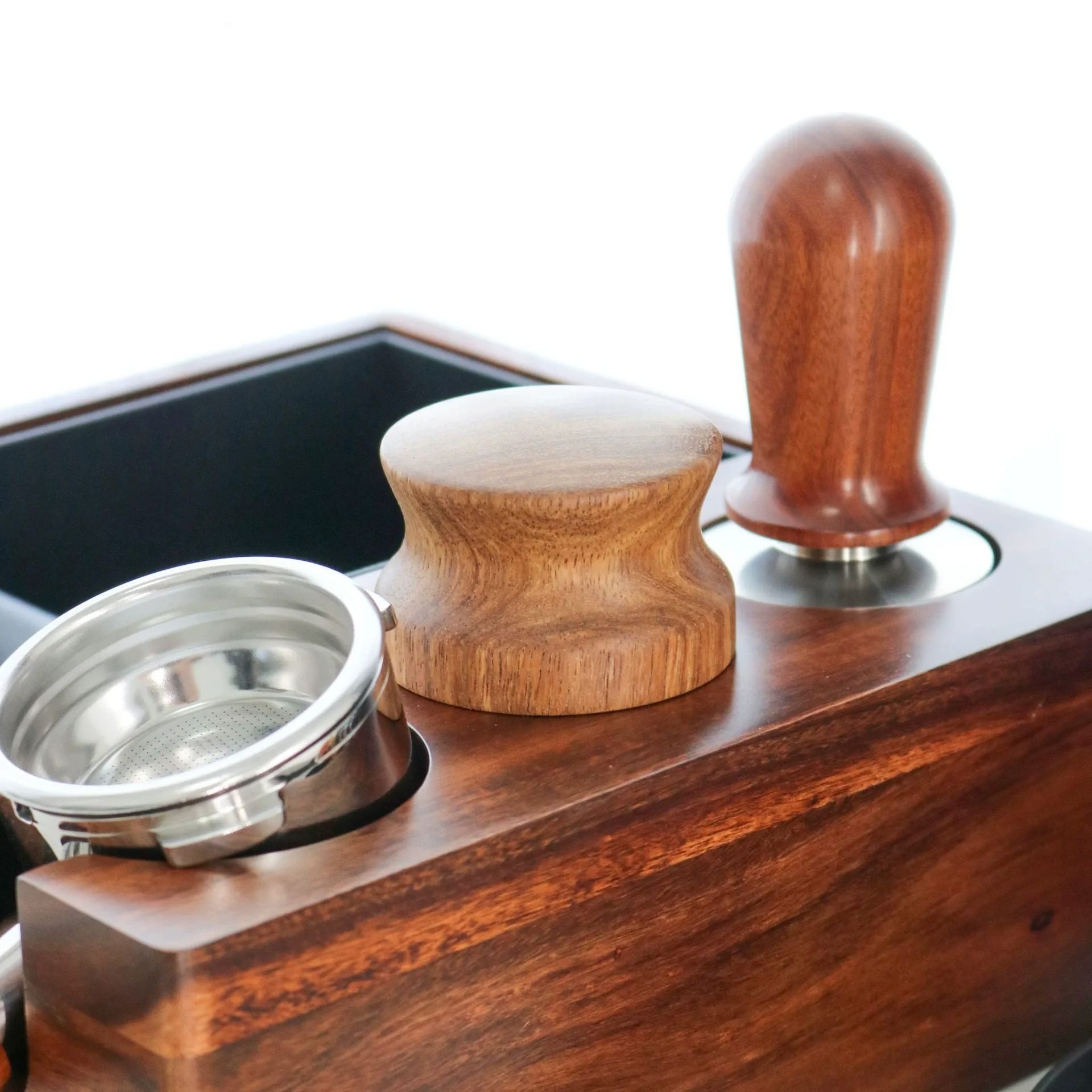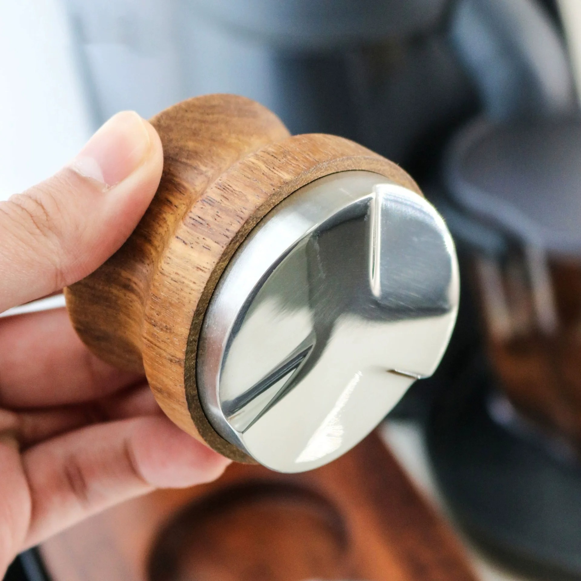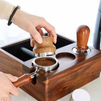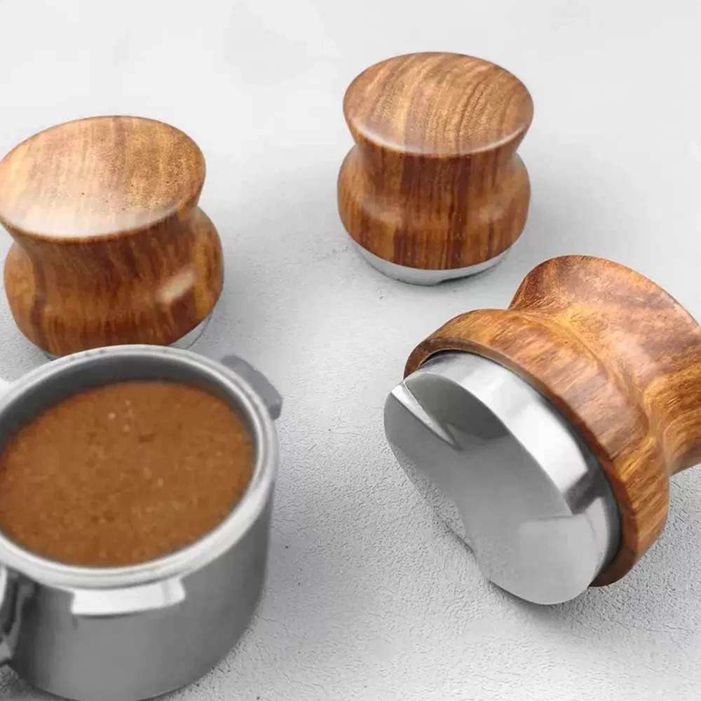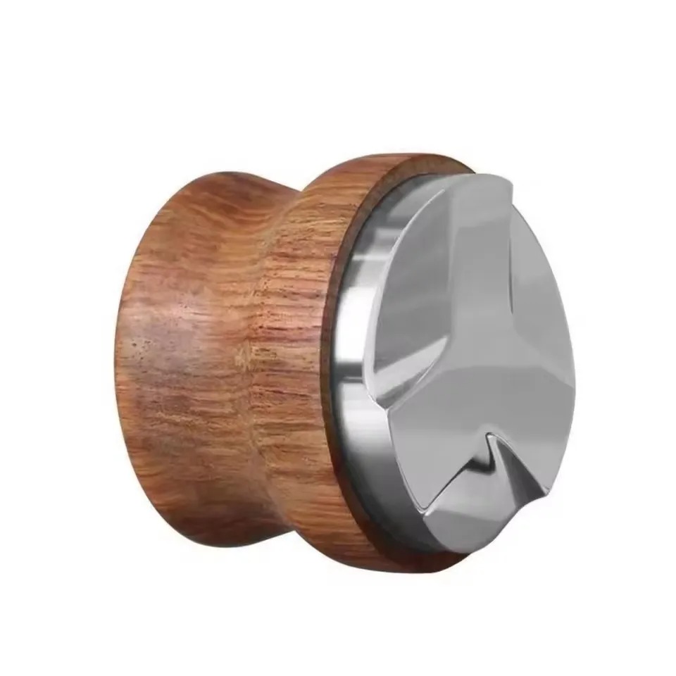| Material Terbaik dengan Handle Ergonomis Terbuat dari stainless steel 304 berkualitas tinggi yang tahan karat dan awet, dipadukan dengan handle kayu elegan yang nyaman digenggam, memberikan kombinasi estetika dan fungsi. Desain pegangan kayu ergonomis membuat distribusi bubuk kopi lebih aman dan stabil. |
