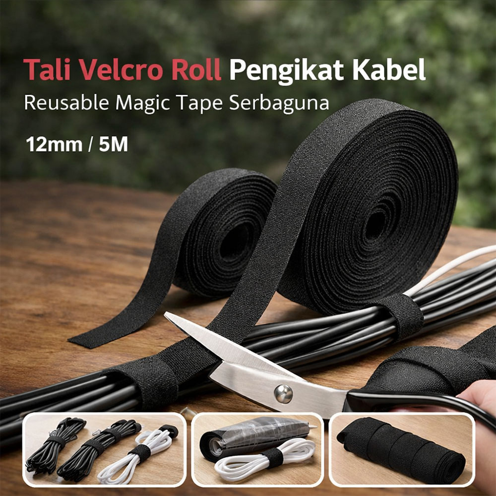 | Tersedia 2 Varian Ukuran Produk ini hadir dalam dua pilihan yang dapat disesuaikan dengan kebutuhan. Varian 10mm x 3 Meter ideal untuk kabel tipis seperti kabel charger, kabel data, dan earphone yang membutuhkan ikatan ringan namun tetap rapi. Varian 12mm x 5 Meter cocok untuk bundel kabel yang lebih tebal, kabel listrik, atau tanaman rambat berukuran besar yang memerlukan ikatan lebih kuat dan lebar. |