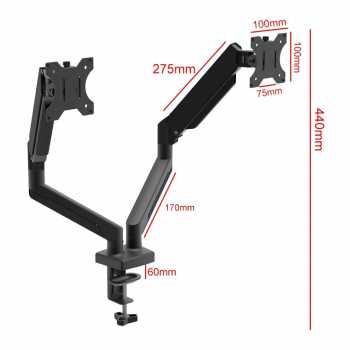 Menggunakan dua monitor sekaligus dapat meningkatkan produktivitas dalam bekerja, bermain game, atau belajar. Agar mendapatkan posisi terbaik, Anda dapat menggunakan bracket monitor table mount dengan dua lengan ini. Tidak hanya menyangga dua TV atau monitor sekaligus, posisinya dapat Anda putar 360°. Bracket ini cocok digunakan pada TV atau monitor layar datar berukuran 14-32 Inch.