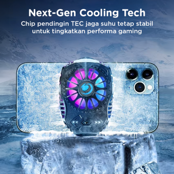 | Pendingin Generasi Terbaru Teknologi pendingin generasi terbaru optimal turukan dan jaga smartphone tetap stabil. Chip pendingin TEC buat proses pendinginan jauh lebih cepat hanya dalam hitungan detik. Cocok untuk Anda yang ingin meningkatkan performa gaming. |