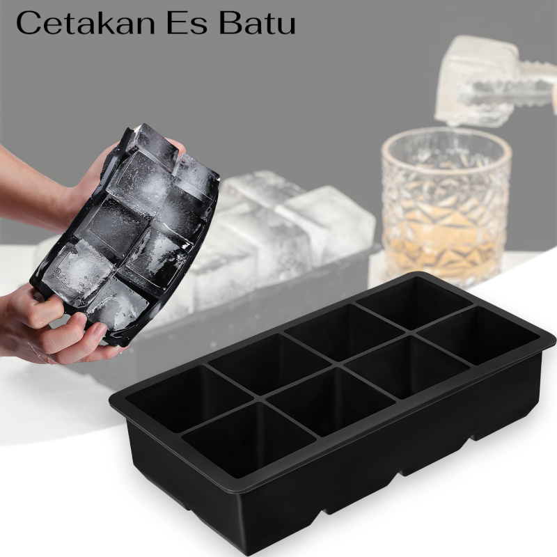 | Terdapat 8 Grid Besar Cetakan ini memiliki ukuran grid yang lebih besar dibandingkan cetakan es standar di kulkas. Terdapat 8 grid besar yang memungkinkan Anda menyajikan berbagai variasi makanan, minuman, atau bahkan membuat kerajinan seperti sabun dan lilin dengan lebih mudah dan praktis. |