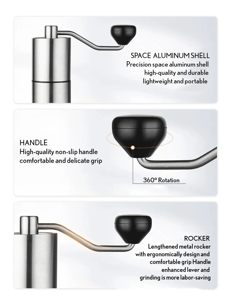 | Mudah dan Ergonomis Kepraktisan dan kenyamanan adalah hal yang akan Anda dapatkan saat menggunakan alat penggiling kopi manual ini. Dibuat dengan diameter bodi yang pas di genggaman dan tuas berbentuk ergonomis guna mempercepat proses penggilingan biji kopi yang Anda lakukan. Didesain anti slip sehingga akan meningkatkan kenyamanan penggunaan. |