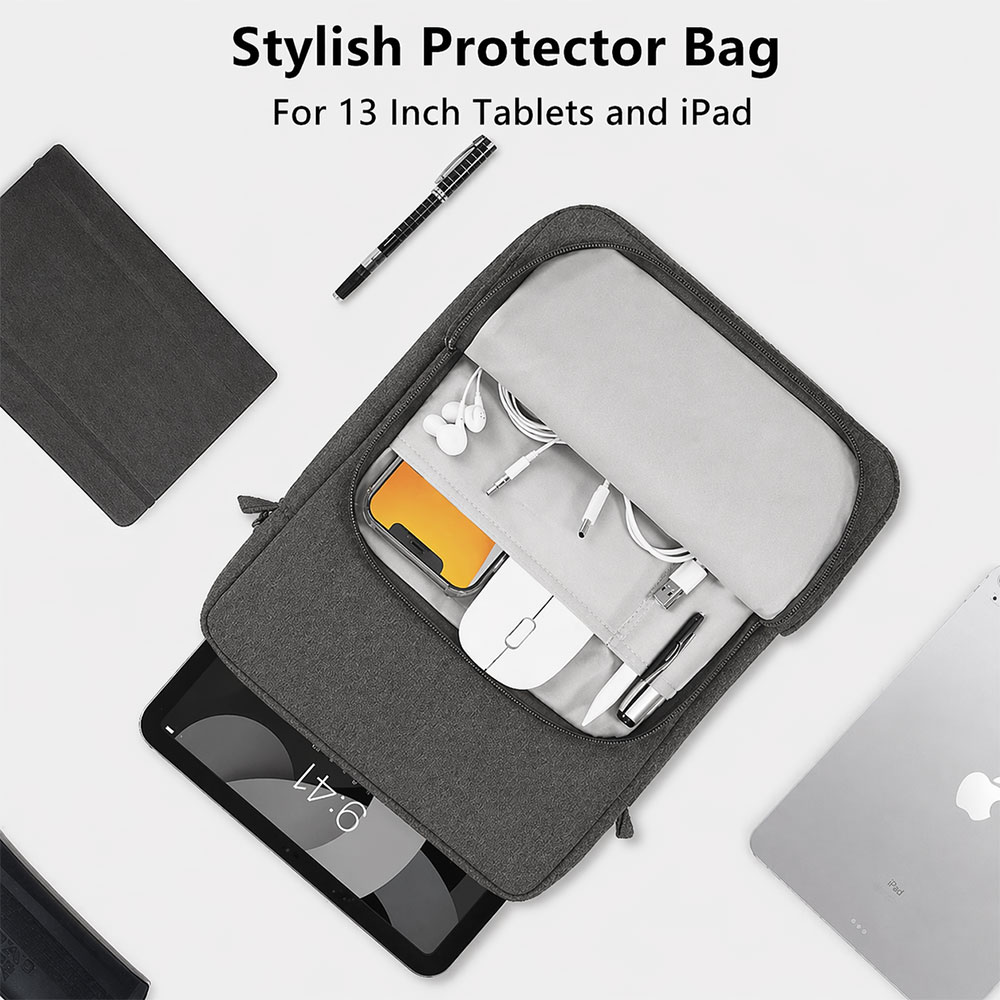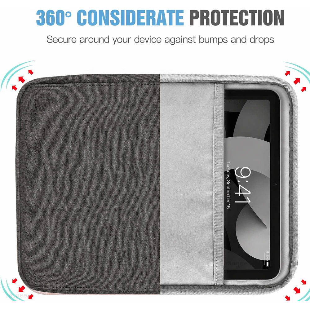 | Perlindungan Menyeluruh Interior tas tablet iPad dilapisi bahan lembut (soft lining) yang melindungi layar dan bodi tablet dari goresan saat dimasukkan maupun dikeluarkan. Lapisan ini sekaligus berfungsi sebagai bantalan benturan (shockproof) ketika tas tidak sengaja terjatuh atau terbentur benda keras. Desain sleeve yang rapat juga efektif mencegah debu masuk dan menempel pada layar perangkat Anda. |