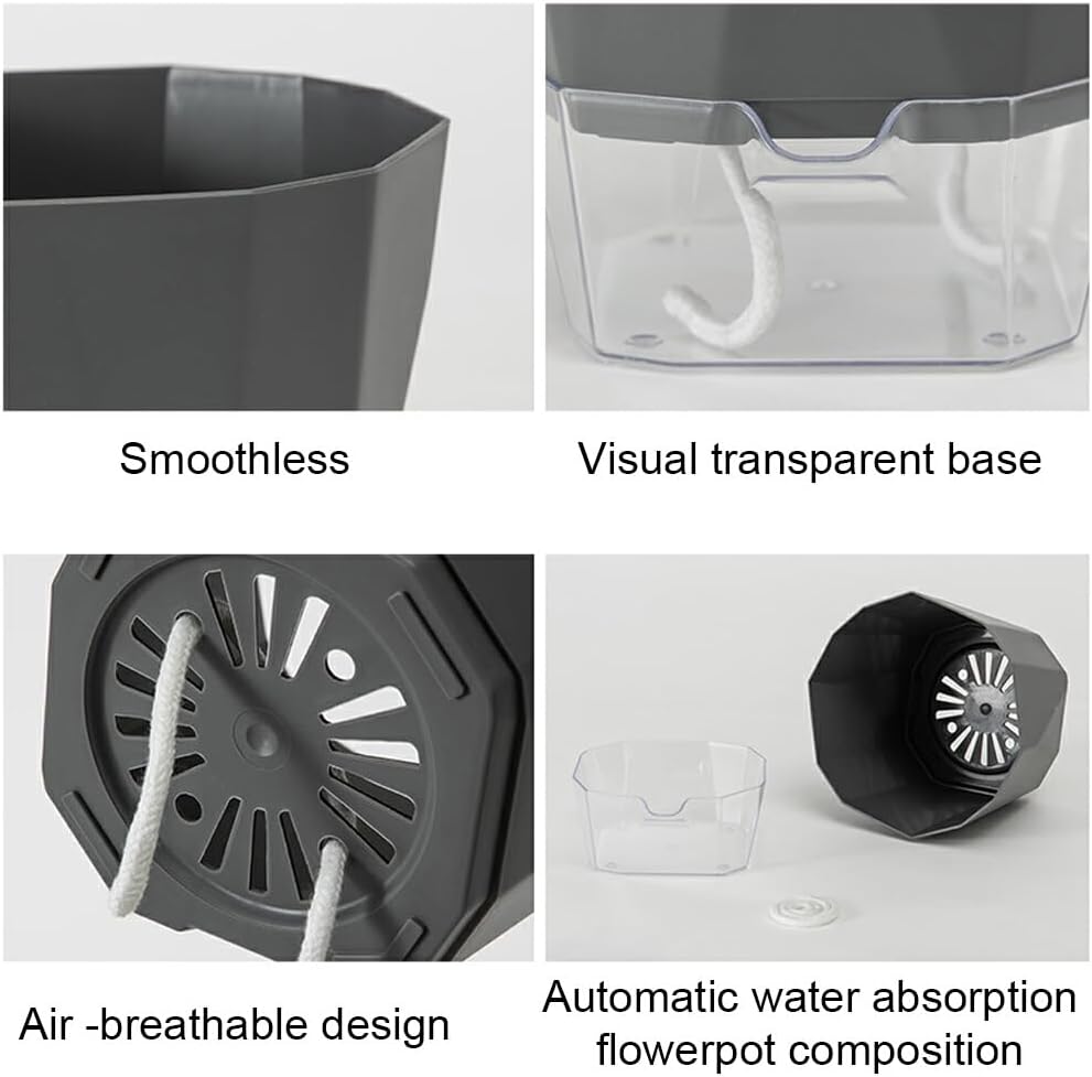 DBXEY pot tanaman otomatis dengan tampilan minimalis dan elegan, cocok untuk dekorasi rumah. Dilengkapi sistem self watering, tali katun yang dapat menyalurkan air secara bertahap ke tanaman. Tak perlu takut kekeringan atau air berlebih, bagian bawah pot transparan berfungsi sebagai penampung air yang memudahkan Anda memantau takaran air setiap hari.