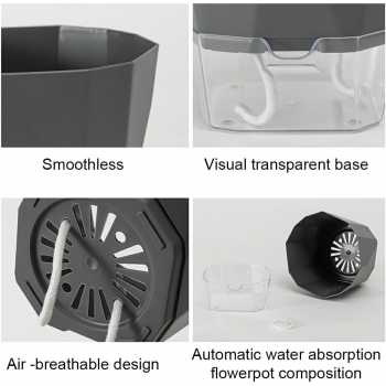 | Wadah Transparan Bagian bawah pot yang dibuat transparan memudahkan Anda untuk melihat sisa air setiap saat. Dengan fitur ini, Anda dapat mengetahui kapan waktu yang tepat untuk menambah air dengan begitu, penyiraman menjadi lebih efisien setiap harinya. |