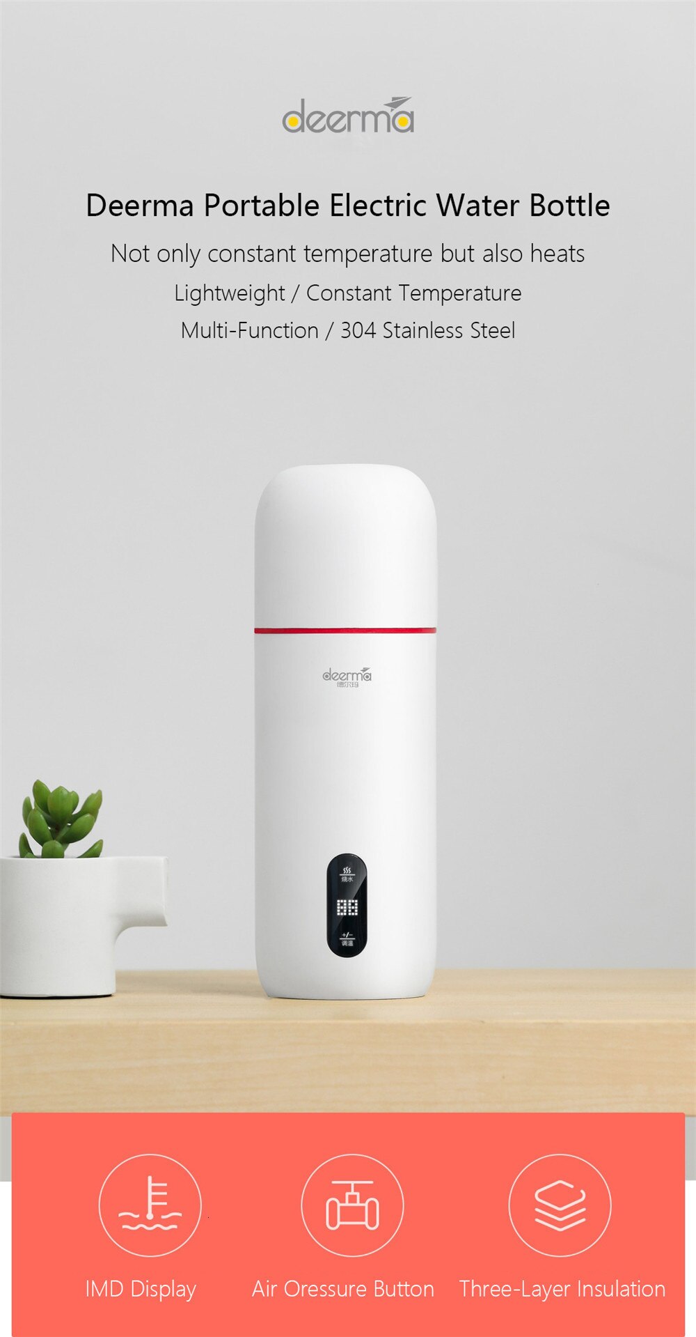 Deerma teko elektrik pintar ini merupakan sebuah teko dan pemanas dengan daya 300 W. Memiliki ukuran minimalis sehingga dapat dibawa ke mana-mana. Memiliki 3 lapisan insulasi panas yang optimal, membuat teko elektrik ini layak untuk dimiliki. Selain itu, teko ini juga dilengkapi dengan real time temperature display yang membuat Anda bisa selalu memantau panas dari air di dalam teko.