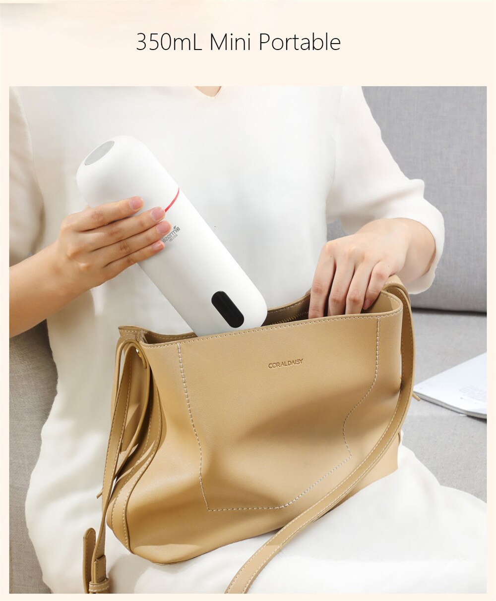 | Ringkas dan Ringan Memiliki ukuran minimalis dengan kapasitas sebesar 350 ml yang dapat menyajikan dua cangkir minuman. Dengan ukuran ini, Anda dapat membawa teko listrik bepergian dengan mudah dengan menyimpannya di dalam tas.