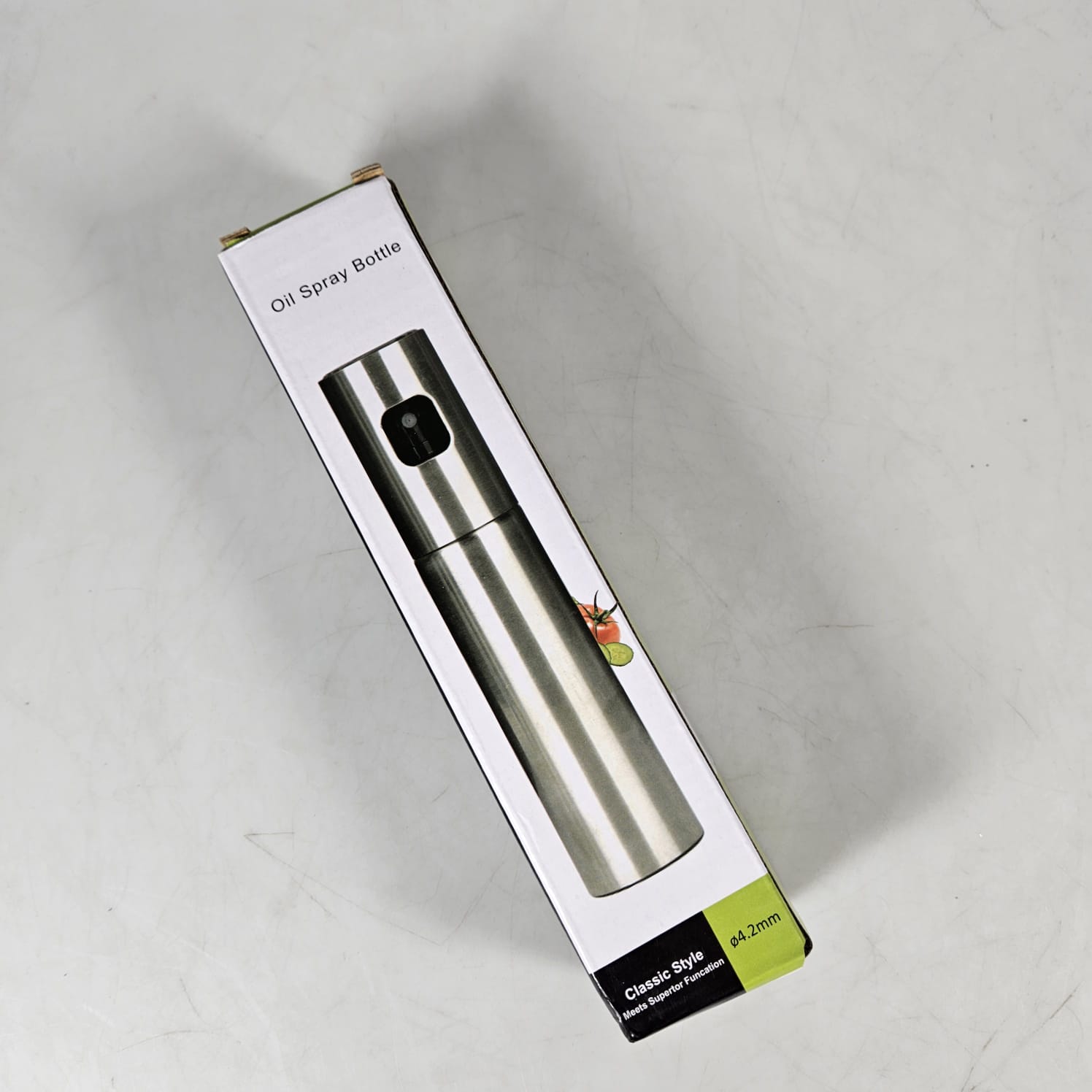 | Botol Semprot Pada bagian atas botol terdapat mekanisme pompa semprot sehingga dapat menyemprotkan minyak secara merata pada makanan. Mengaplikasikan minyak dengan teknik ini akan jauh lebih efektif. |
