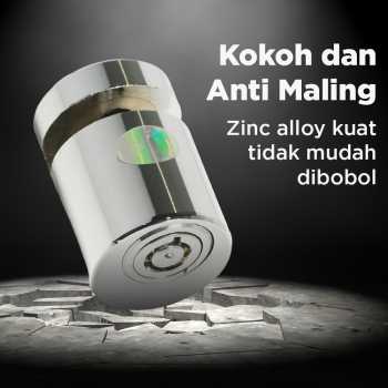 | Kokoh dan Anti Maling Material zinc alloy hasilkan gembok sepeda yang kokoh. Kuat dan tidak mudah dibobol meski menggunakan gergaji. |