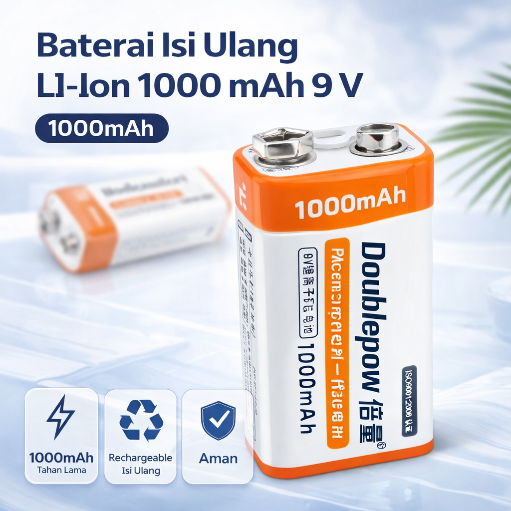 Masih sering beli baterai 9 V sekali pakai yang cepat habis dan mahal? Kini saatnya beralih ke baterai 9 V rechargeable dari Doublepow yang lebih hemat dan tahan lama. Dengan kapasitas 1000 mAh dan teknologi Li-Ion, baterai ini cocok untuk mikrofon wireless, gitar aktif, multimeter, smoke detector, hingga alat elektronik lainnya. Solusi modern untuk kebutuhan daya yang stabil dan ekonomis.