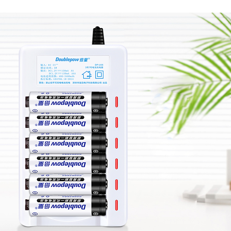 Charger Doublepow ini digunakan untuk mengisi ulang daya baterai jenis AA dan AAA Ni-MH dan Ni-CD memiliki 6 slot yang dapat digunakan secara bersamaan. Terdapat beberapa proteksi untuk melindungi baterai saat proses pengisian seperti proteksi temperature, overcharging, overvoltage, konsleting dan lainnya.